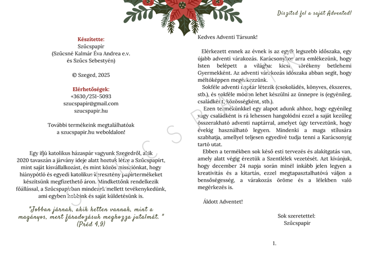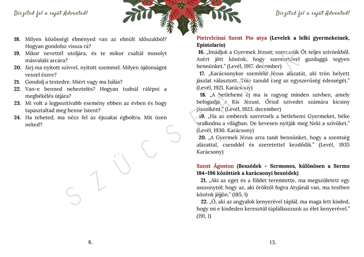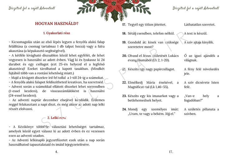 A kézikönyvben többféle lelki út közül válaszhatsz, ami azért különleges, mert saját magad lelki igényéhez szabhatod, hogy az adott évben melyik verziót használod az adventi utad során. Hiszen ezzel az adventi naptárral az is a célunk, hogy több éven keresztül gazdagítsa a Karácsony titkára való hangolódást.